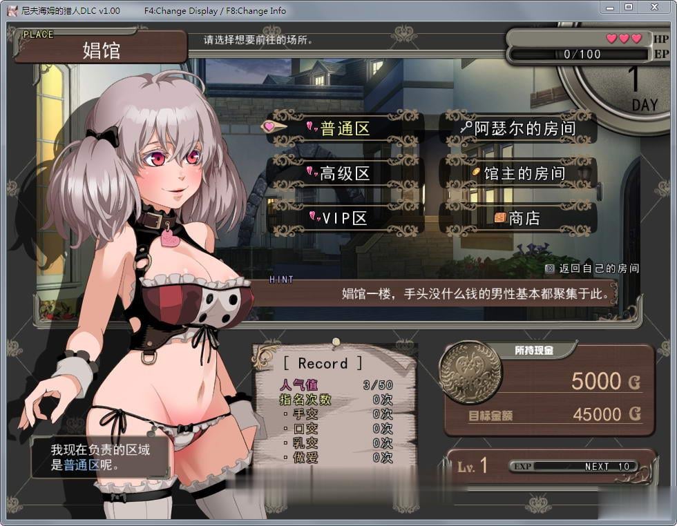 ·游戏不仅是官方中文汉化,而且还搭载了一个【风俗馆DLC】,是阿泽尔彻底堕落,变成风俗娘后的剧情,在此DLC种,你可以每天控制阿泽尔疯狂接客,不仅成为最强的猎人,也成为尼普尔海姆最骚的鸡中之霸!