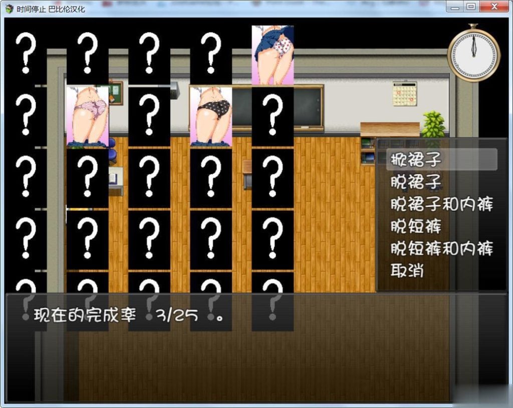 ·控制男主,用可以停止时间的怀表,做各种各样下作龌龊的事情吧!在不同的场景中寻找可以下手的目标,肆无忌惮的在停止的时间中上下其手,最后彻彻底底征服这些女人!
