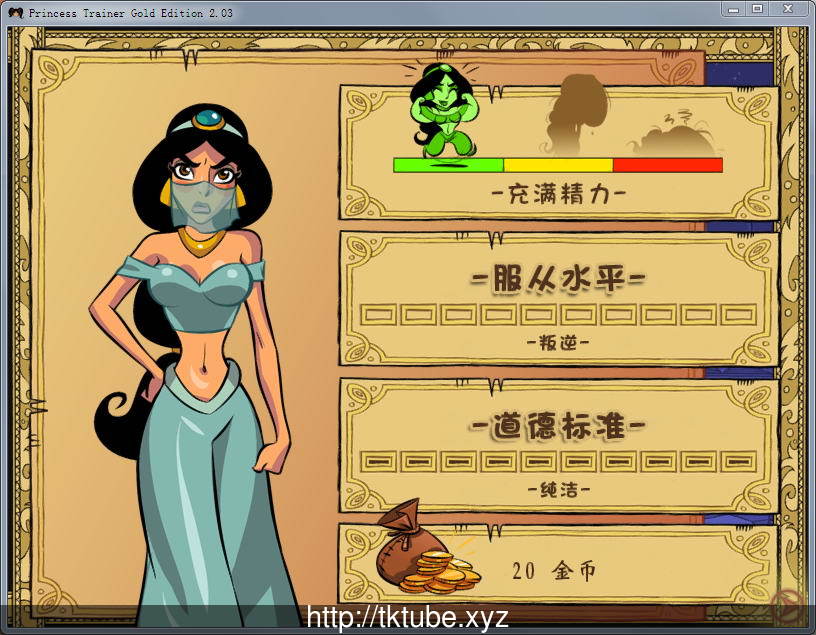 玩家控制的还是大鼻子精灵,这次他穿越到阿拉伯,遇到了一个阿拉伯公主。你要对她进行各种调教。最终把刁蛮任性的公主变成一个RBQ的故事。有许多喜闻乐见的爆笑剧情,以及社保的动态场景,以及多个可教育的女角色。