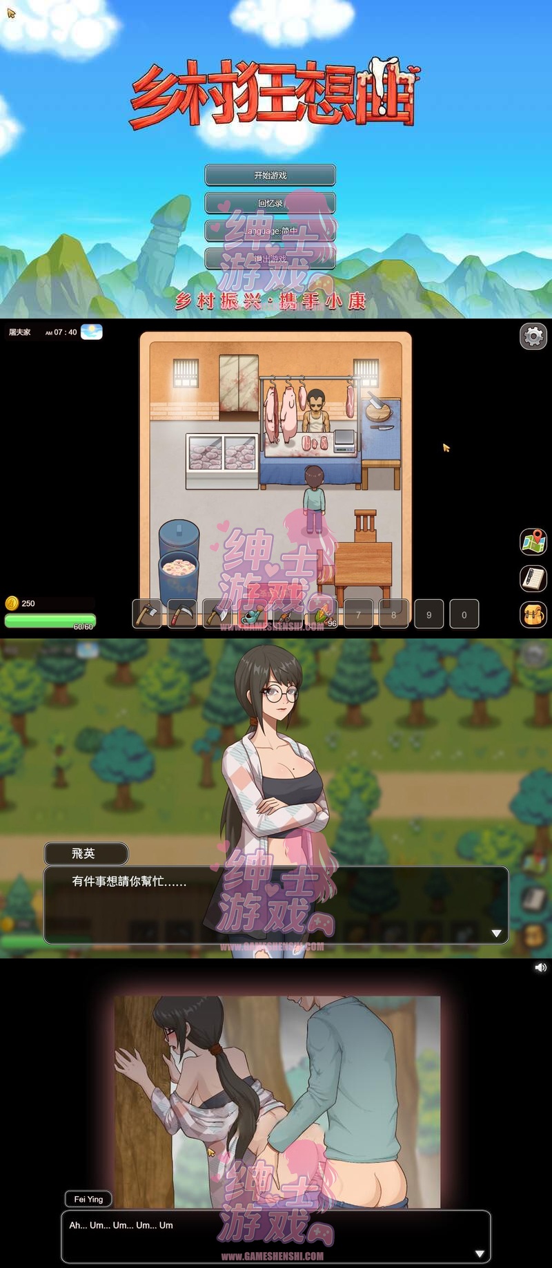 SLG, 模拟经营, 乡村, 视觉小说, 女主角, 后宫, H事件, 动态CG, 官中, Steam, 语音, 腐败, 日常, 多结局, 2D手绘, 农场, 青梅竹马, 邻家姐姐