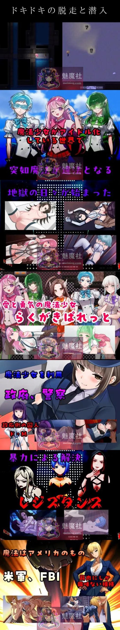 游戏采用RPG框架,推进主线剧情收集H场景,分岐4条路线:魔法少女路线(与其他魔法少女合作脱出)、犯罪者路线、警察路线、肌肉路线。