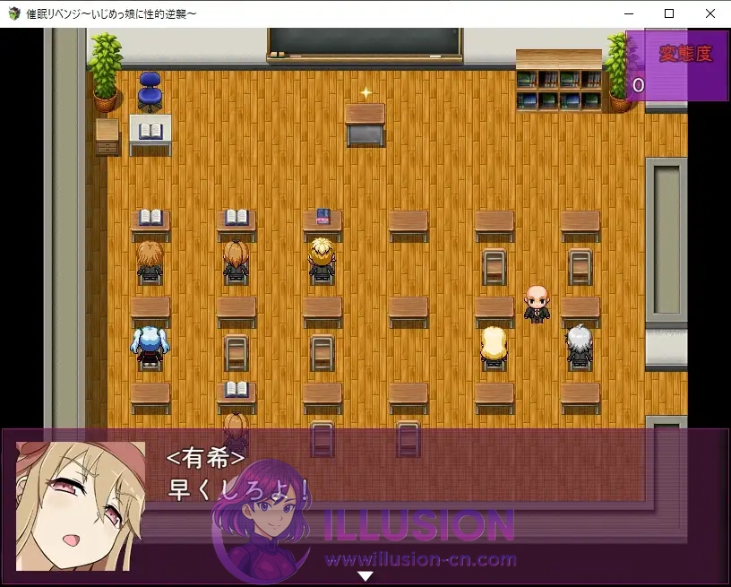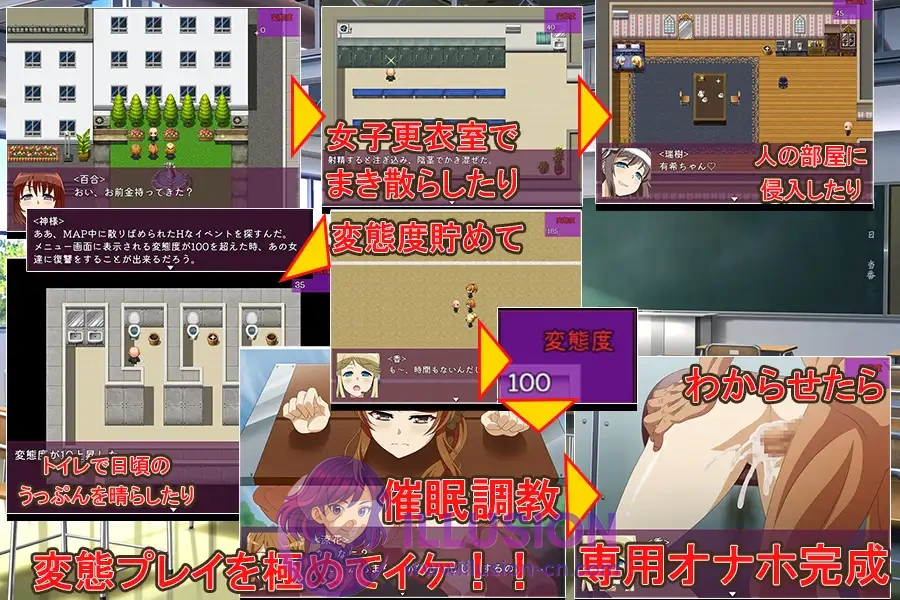 在地图上四处奔走,提升变态程度,用催○让欺凌者堕落!